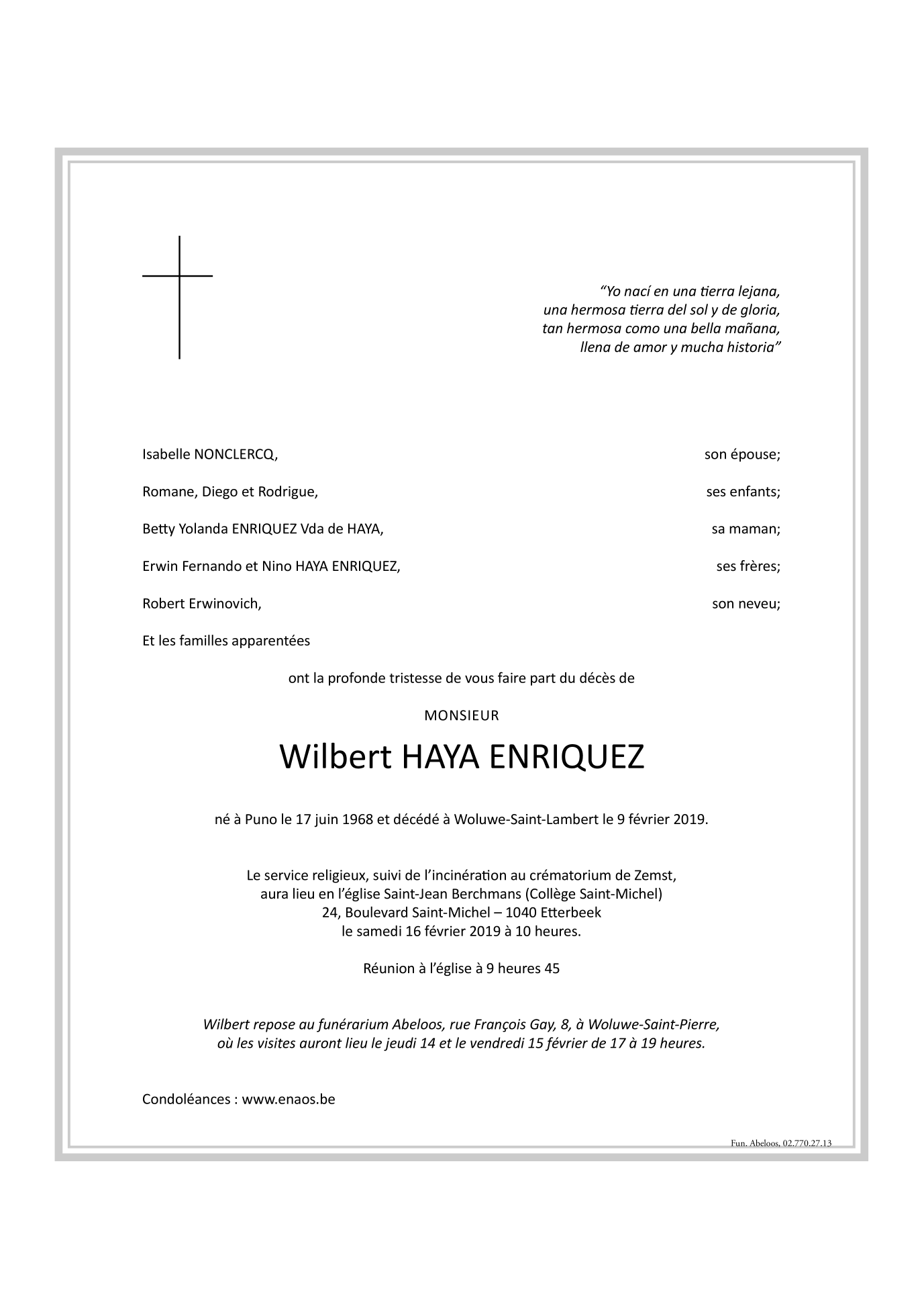 Décédé à Woluwe-Saint-Lambert (1200) le samedi 9 février 2019 à l'âge de 50 ans