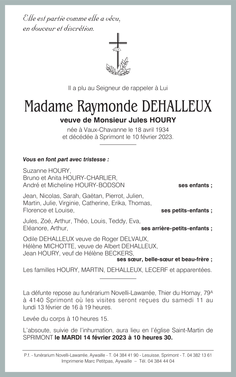 Madame Raymonde DEHALLEUX