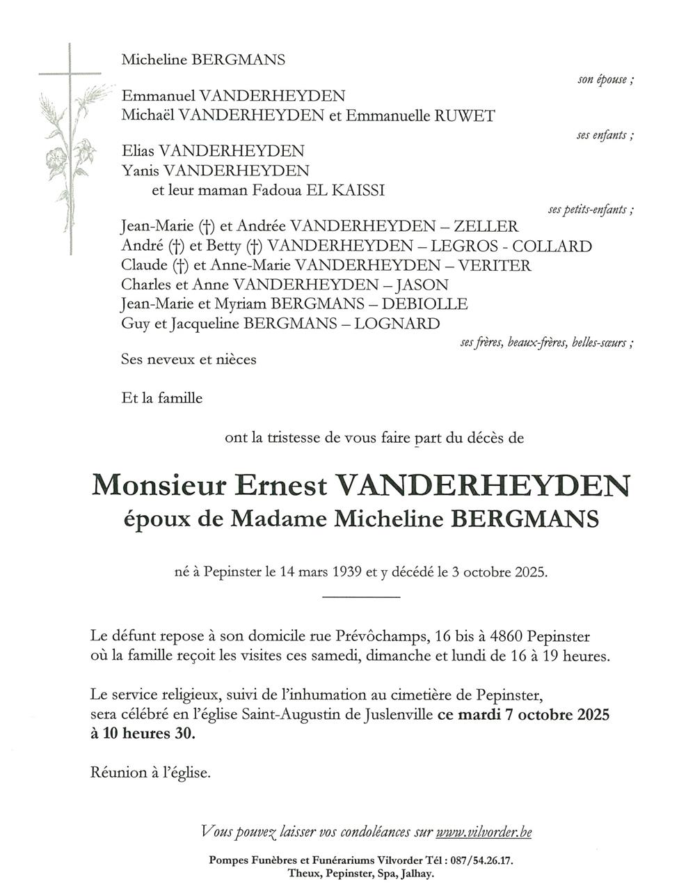 Décédé à Pepinster (4860) le vendredi 3 octobre 2025 à l'âge de 86 ans